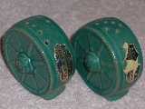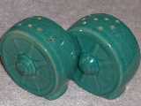 Wagonwheels shakers glazed turquoise green on Ada clay