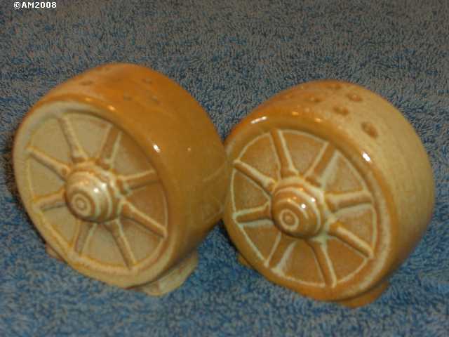 94H Wagon Wheels, desert gold glaze. S7/P7 holes set. Double diamond group. This is the typical application of desert gold to the Ada clay showing the strong honey coloring. This is the dingy Ada clay in use just before the switch to Sapulpa clay.